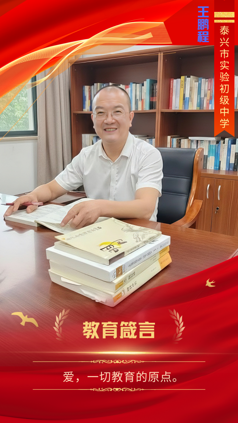 王鹏程,正高级教师,从事教学工作39年,泰州市第四届初中语文名师工作室领衔人。曾获江苏省优秀援疆支教团团长、优秀教育援疆人才,泰州市特级教师、语文学科带头人、优秀教育工作者、优秀班主任、教科研先进个人等荣誉称号。