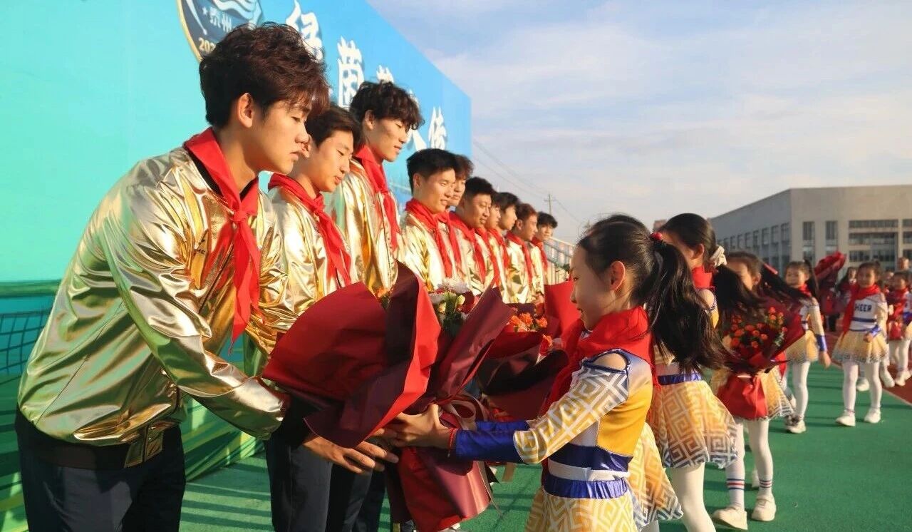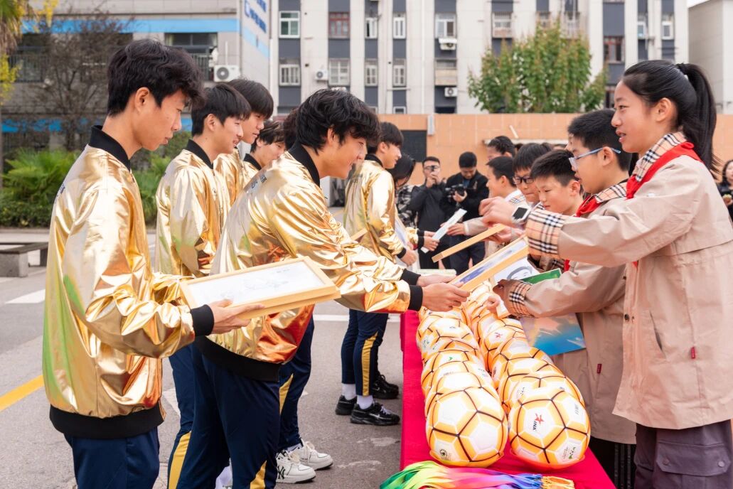活动现场,学生代表们手捧鲜花,献给心目中的英雄。这不仅是对冠军队伍的祝贺,更是对他们拼搏精神的崇高敬意。