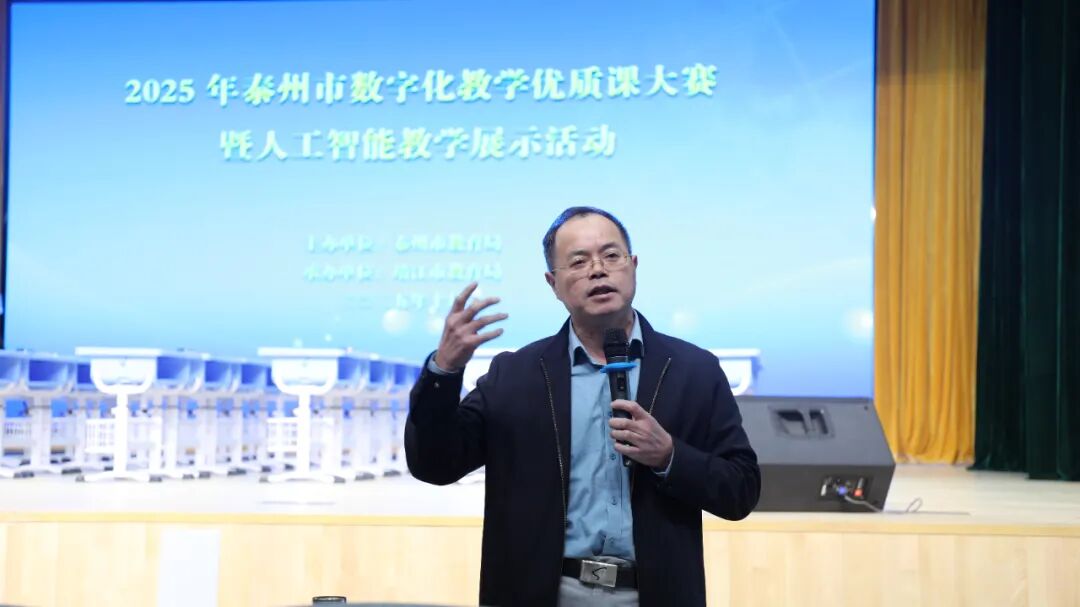 为深入落实国家教育数字化战略,加快推进教育数字化转型,推动人工智能技术赋能课堂教学创新,打造高质量课堂,促进教师数字素养与教学能力的协同发展,10月28日至29日,2025年泰州市数字化教学优质课大赛暨人工智能赋能教学展示活动在靖江市举行。大赛由泰州市教育局主办,靖江市教育局承办,泰州市教育局副局长许志勤出席活动。