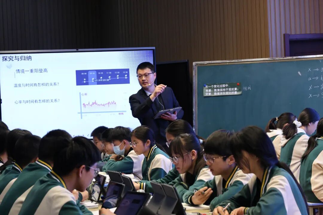 在初中数学课堂上,教师们灵活运用GeoGebra、AI学情分析系统等工具,将技术与教学深度融合,充分体现“以学定教”理念,展现出数字教学的创新活力。在课堂设计中,教师们注重情境创设与互动体验,借助“苏超”赛事、动画影片等生动素材引入课题,有效激发学生兴趣。通过设计“挖宝藏”、分配“专属坐标”等互动环节,提升课堂参与感。同时,利用动态几何模型与模拟系统,将抽象的数学概念与定理以可视化方式呈现,帮助学生直观理解知识内涵。