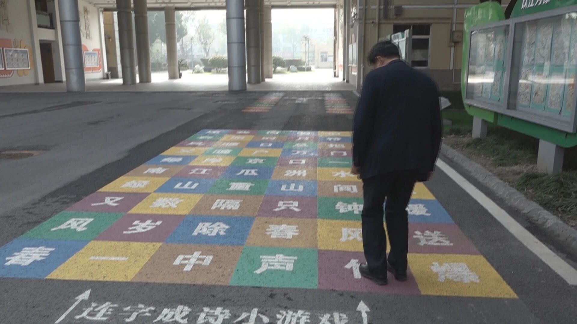 走在校园路上,可以看到画有不同文字、数字、图案的方格游戏。校长黄敬统介绍,这正是体育、美术和语文学习的结合。而在学校的艺术长廊,随处可见师生的书法绘画作品。校艺教处主任陈斌介绍,其中还有体育老师的作品。体育老师能画出好画,也让黄平代表看到了“五育融合”在师资层面的生动实践。