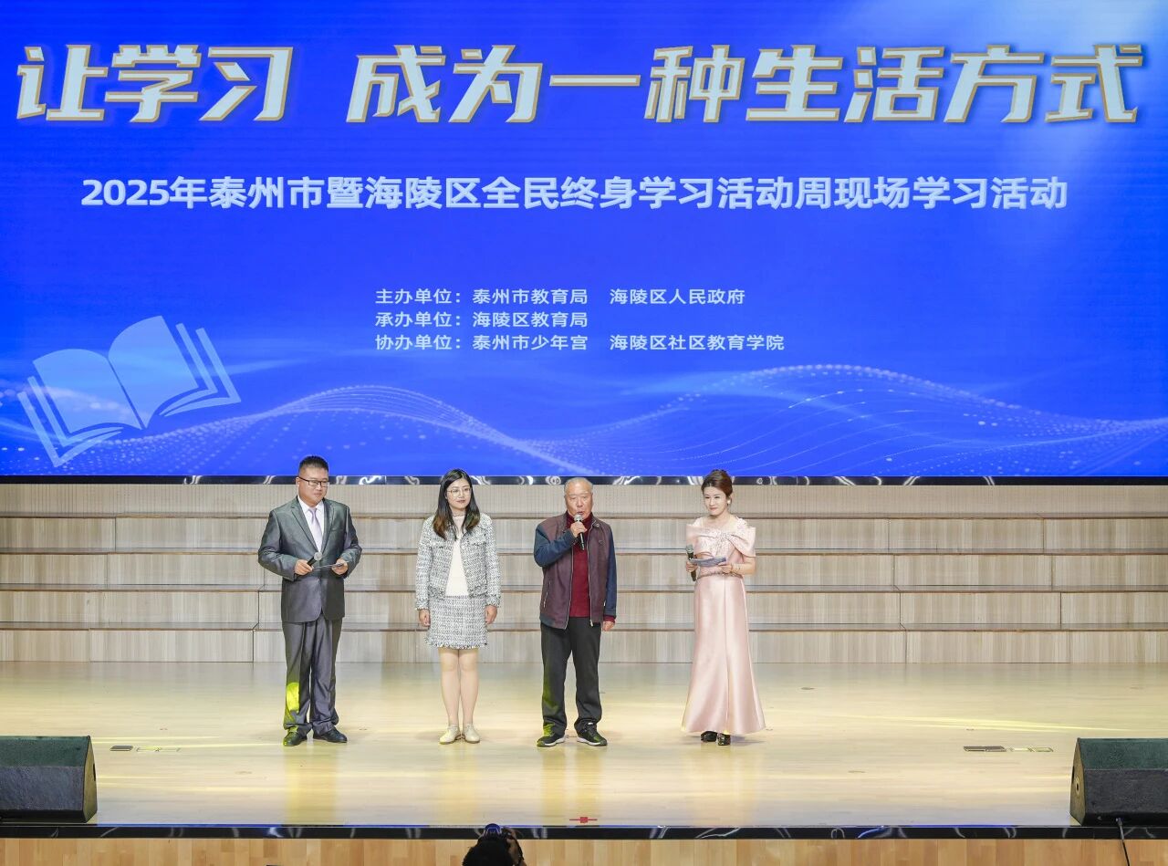 活动现场,与会领导共同启动本次活动周。活动分为“薪火相传·乐学篇”“砥砺奋进·幸福篇”“同心筑梦·创新篇”三大篇章,通过微视频、说唱、情景剧、访谈、舞蹈等多种形式,全方位呈现泰州市终身学习的生动实践。