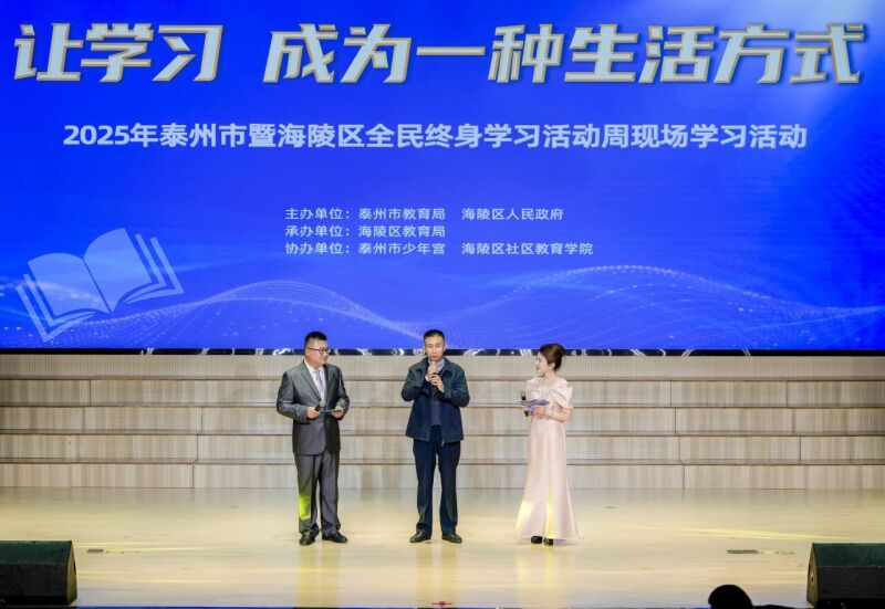 本次活动由泰州市教育局、海陵区人民政府共同主办,海陵区教育局承办,泰州市少年宫、海陵区社区教育学院协办,旨在全面展示终身学习成果,营造全民学习的浓厚氛围。近300名师生、社区居民、非遗传承人及各界代表齐聚现场,共同见证这场以“学习”为核心的全民盛会。