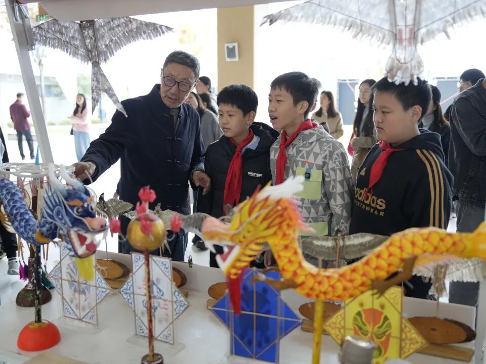 线条流畅的烙画、精巧灵动的棕编、栩栩如生的钩编作品、细腻入微的雕刻、刚柔并济的太极……大家或驻足观赏、或亲手体验,在沉浸式互动中感受学习的乐趣与魅力。
