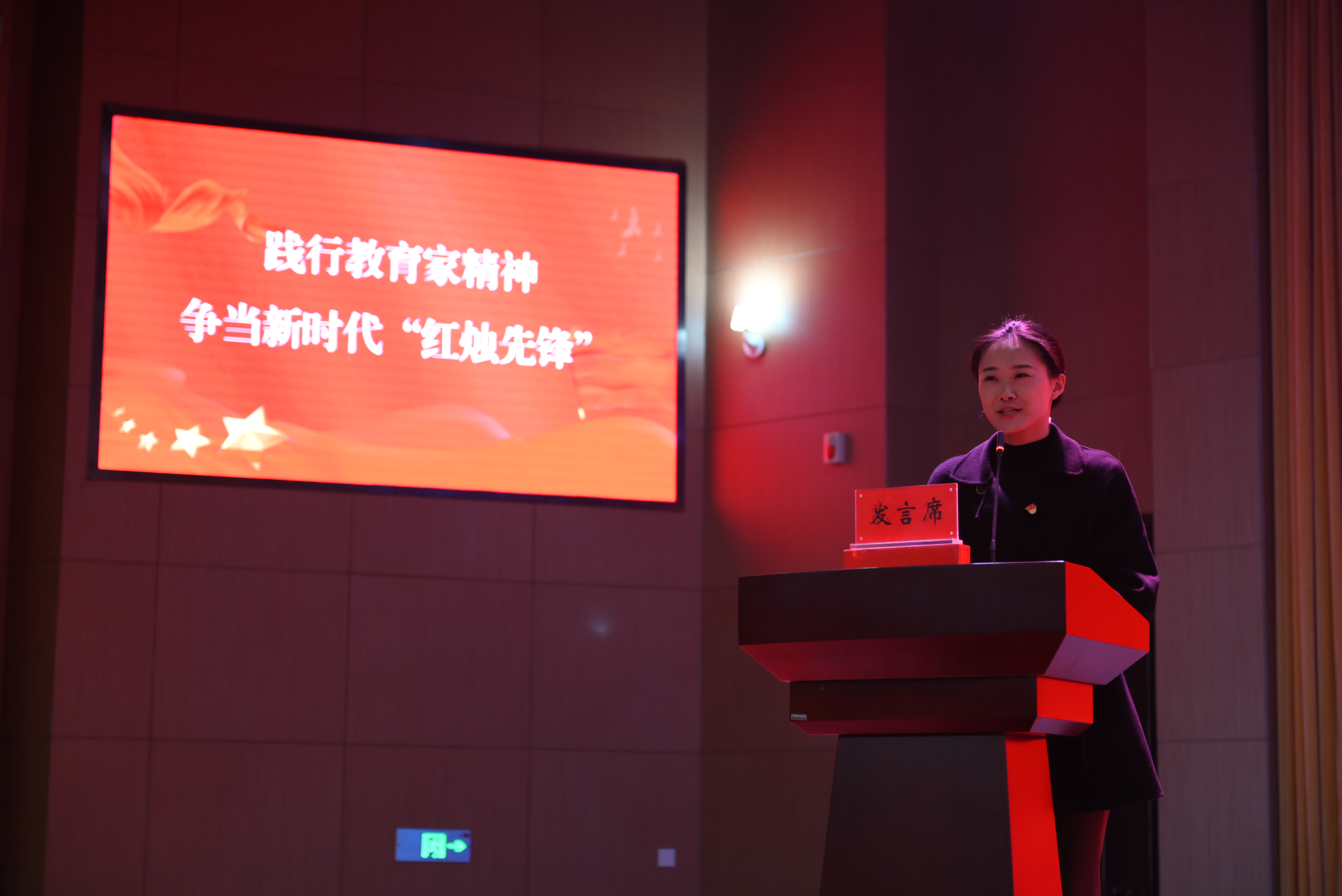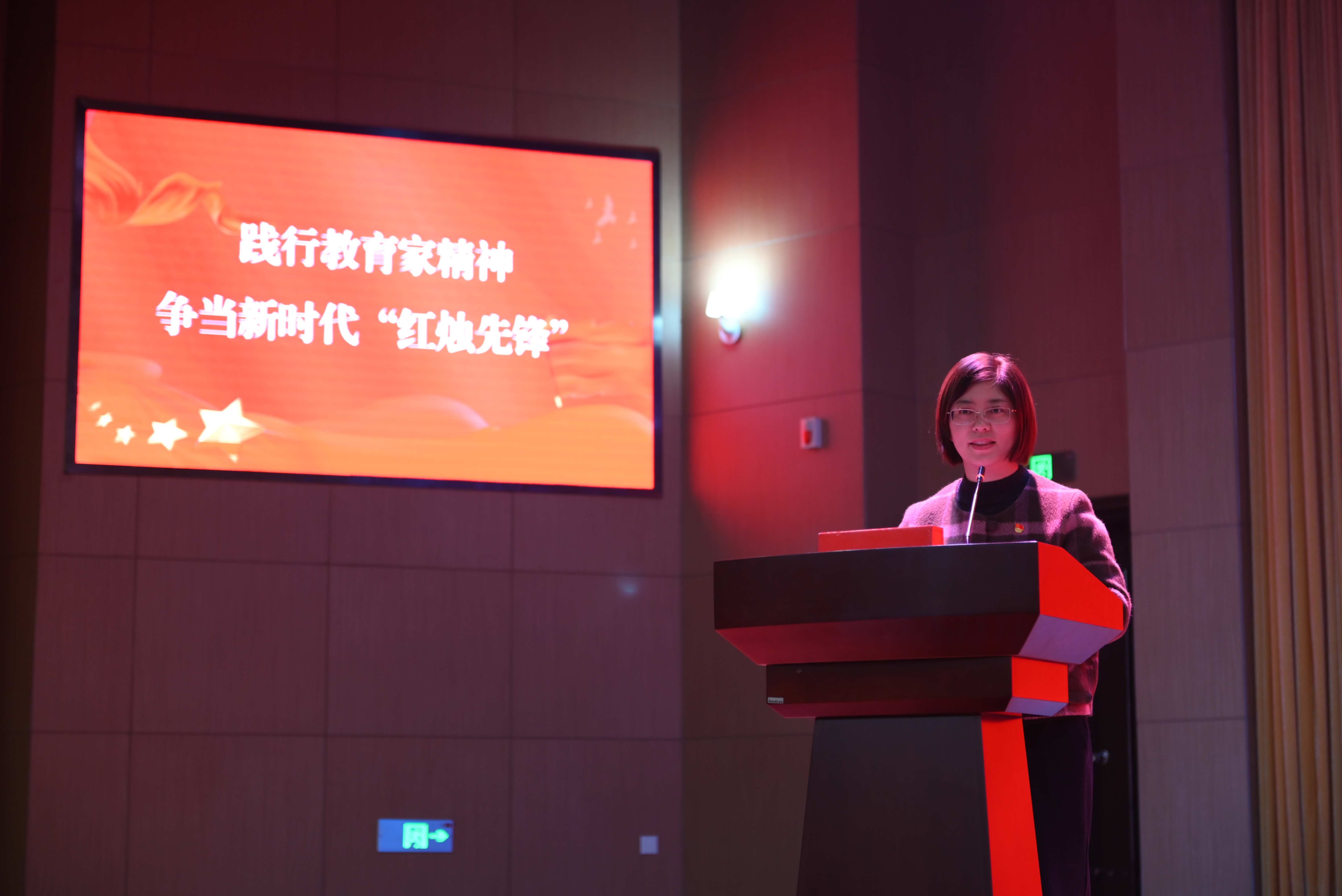 “典型引路”环节,学员们先后观看了南京市浦口区行知教育集团总校长、中国教育学会副会长杨瑞清《用教育家精神照亮行知路》和泰州职业技术学院经济与管理学院党总支书记陈玉《择一事终一身 不为繁华易匠心》的“红烛先锋”事迹宣讲视频。泰州市凤凰小学王萍老师和泰州市特殊教育学校卞查丽老师结合各自扎根教育教学一线的实践与思考,为学员们作践行教育家精神宣讲。她们用平凡岗位上的不凡坚守与创新探索,生动诠释了新时代党员教师的担当与风采。