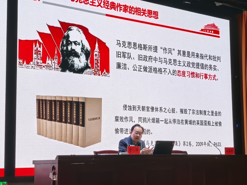25日下午,市委党校政社教研室副主任、副教授于江作《深入学习贯彻中央八项规定精神,持之以恒推进作风建设》专题讲座。于教授结合具体实例从多维度展开,既深入解读了“风清则气正”的作风建设意义,明确“‘真’减负、‘强’执行、‘重’实干”的实践路径;也细化分析了调查研究方法,强调以“实事求是”的态度解决问题;同时还以周恩来总理十条家规为示范,阐释廉洁自律、不搞特殊化的作风标杆,并结合理想信念与道德修养要求,引导党员同志以“徙木立信”的态度践行使命担当。