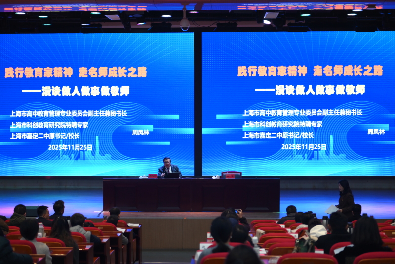 25日上午,上海市嘉定二中原书记、校长,上海市特级教师、特级校长周凤林作《践行教育家精神 走名师成长之路——漫谈做人做事做教师》专题讲座。周校长以“践行教育家精神”为核心,深度融入《易经》智慧与传统文化,以“做人师、做经师”为主线,系统解读“德、爱、诚、责”等十五字素养体系,提出“慎独、慎言、慎行、慎微”品德准则。讲座将传统智慧与党性修养、教学实践相结合,助力党员教师以更深厚的素养、更坚定的信念筑牢育人根基,发挥先锋模范作用。