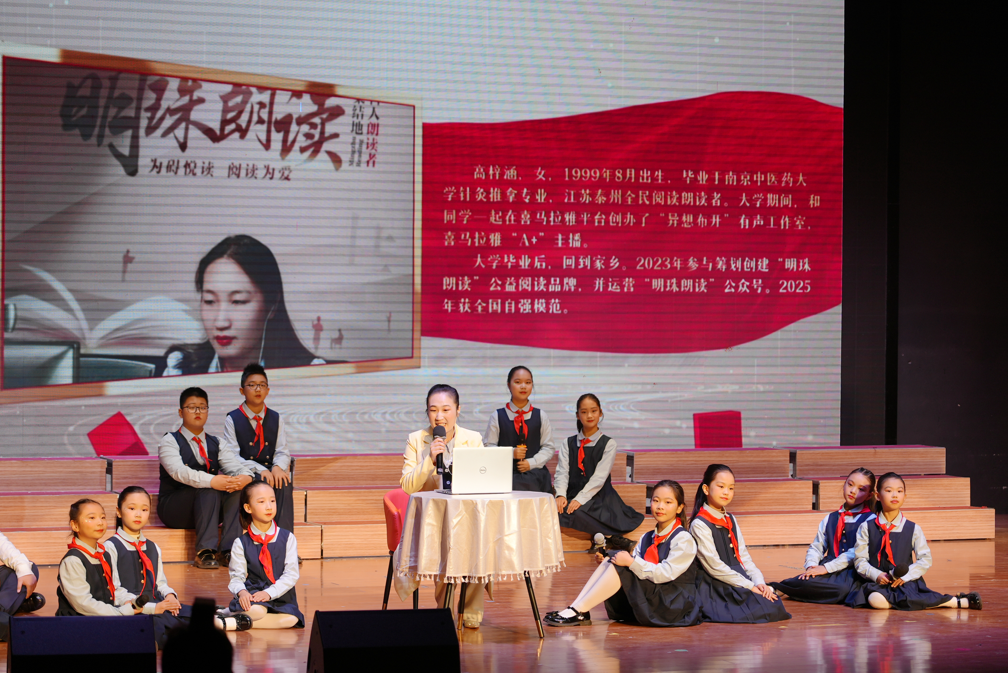 泰州医药城教育集团的师生诵读《书香漫卷凤城 墨韵浸润高新》,全国自强模范、盲人文学爱好者高梓涵与泰州市周山河小学师生共同呈现的人物寻访《纸间有光,山河载暖》和由泰州医药高新区(高港区)正高、特级教师培养对象研修班教师带来的诵读《教育家精神之光》,则多角度展现了阅读对师生成长的积极影响,彰显了阅读超越障碍、温暖人心的力量。活动现场还为高梓涵颁发了“校外阅读点灯人”聘书。