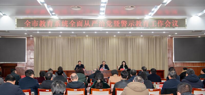 3月10日下午,市教育局召开全市教育系统全面从严治党暨警示教育工作会议,市委教育工委书记、市教育局局长万永良出席会议并讲话,市委教育工委副书记张晶主持会议。