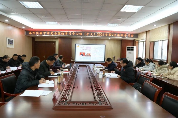 近日,泰州实验中学召开党委理论学习中心组(扩大)集体学习会,深入学习贯彻党的十九届六中全会精神。市教育局巡学旁听组秦桂明处长、陶立处长莅临学习会。学校领导班子全体成员、各中层部门主要负责人、各支部书记参加了集体学习。会议由校党委书记、校长卞玉年主持。