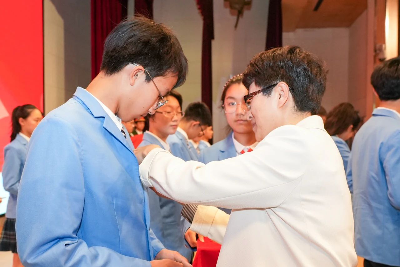 团市委书记贺骏、市委教育工委副书记张晶,省泰中附中党委书记潘霞、分管校长叶晓锋出席活动,省泰中附中2024年春学期新发展团员、优秀少先队员代表等160余人参加活动。