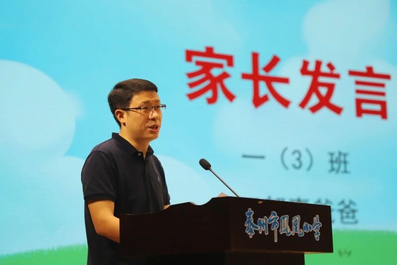 家长代表用“小树苗”“小太阳”“小凤凰”三个比喻,表达了对孩子们茁壮成长、温暖他人、展翅高飞的美好期望,并代表全体家长承诺,将积极配合学校,共筑孩子成长的桥梁。