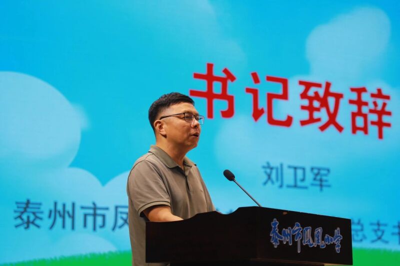 泰州市凤凰小学党总支书记、教育集团总校长刘卫军致辞,激励孩子们每日进步、发掘潜能、闪光成长,争做“卓而特立,越而超己”的奋翼少年。