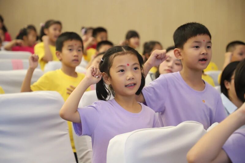 全体新生举起右拳,庄严宣誓:“我是小凤凰,立志要翱翔……”铿锵誓言展现小小少年的昂扬志向。