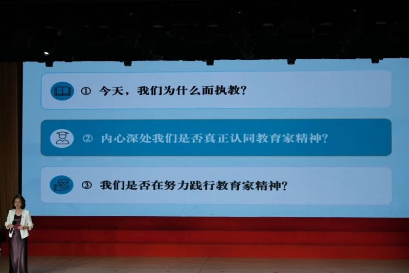 《论语》中记载“吾日三省吾身”,在自省中我们叩问心灵,在省身时我们明辨是非。现场全体人员在静默中自我反省:“今天,我们为什么而执教?”“内心深处我们是否真正认同教育家精神?”“我们是否在努力践行教育家精神?”。