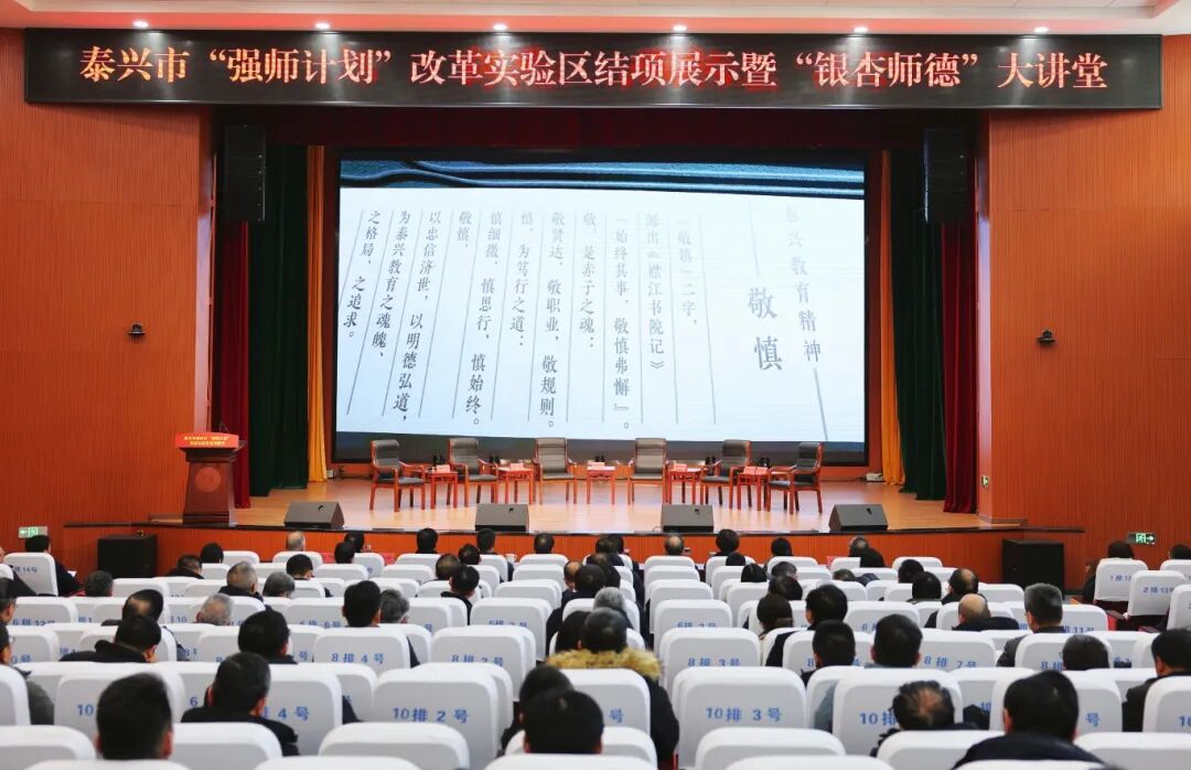 1月23日下午,泰兴市“强师计划”改革实验区结项展示暨“银杏师德”大讲堂活动在泰兴市实验初中泰师分校举行。泰州市教育局、泰兴市政府相关负责人,泰州市各市(区)教育局分管负责人以及泰兴市各中小学、幼儿园书记、校(园)长参加活动。